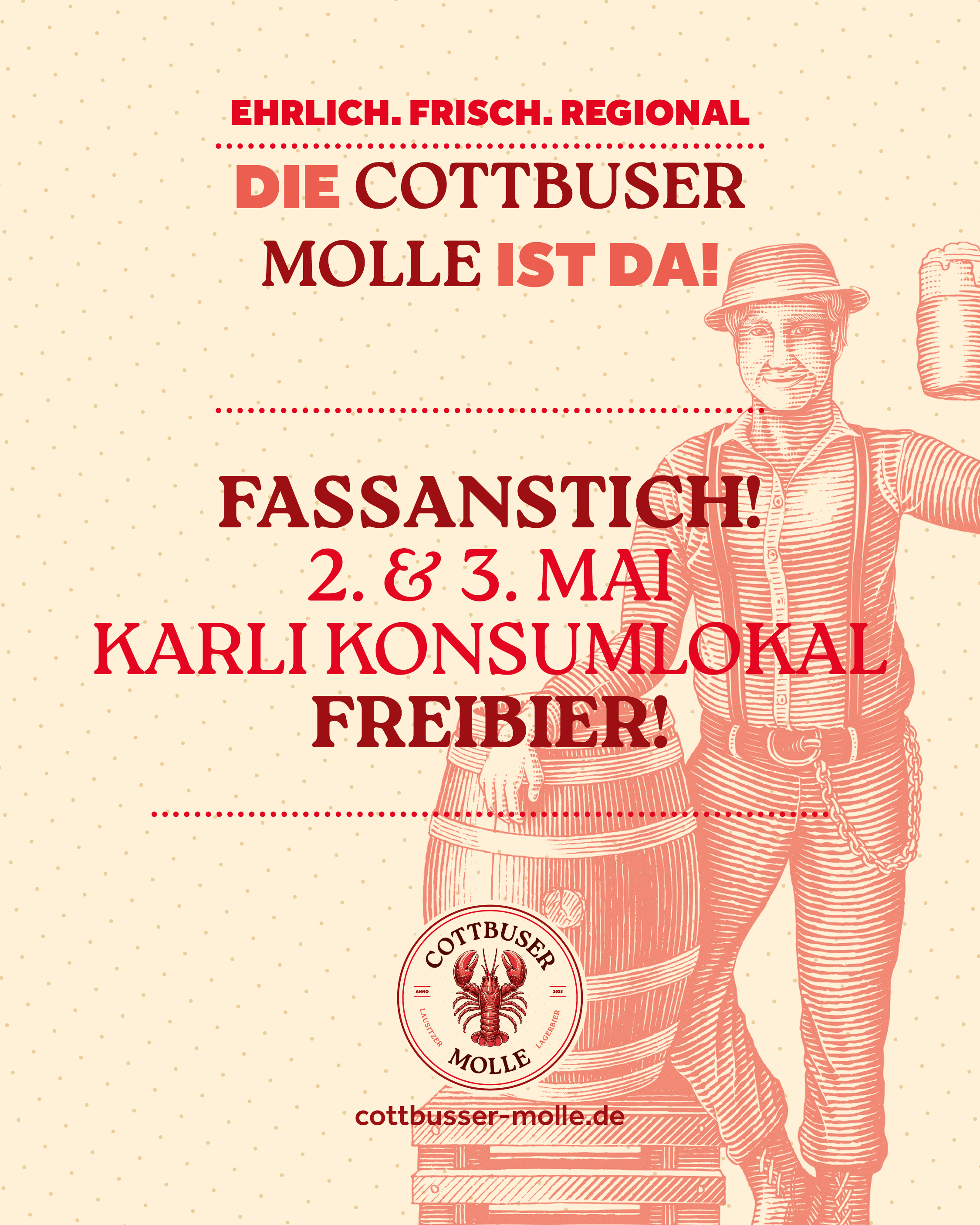 Am Freitag den 2.5. ab 19 Uhr und Samstag den 3.5. ab 17 Uhr zapfen wir im KaRli KonsumLokal (Karl-Liebknecht-Straße 9a, Cottbus) unser erstes Bier.